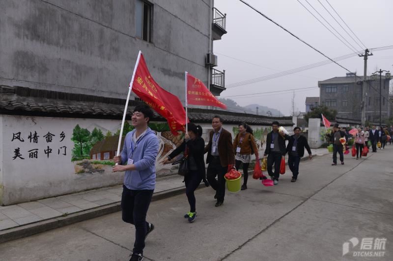 在禮堂里,30多位員工進行了簡單的活動啟動儀式,然后分成5個小組徒步到農戶家中去。一路上,員工扛著大米,拎著食材、物資,絲毫不覺著累。來到農戶家中,各個小組就開始忙碌起來,送上慰問、水果、大米、食用油等,為家中的孩子準備了小書包和零食,給農戶打掃衛生,為農戶燒一桌菜,廚房里熱火朝天,忙的不亦樂乎。
