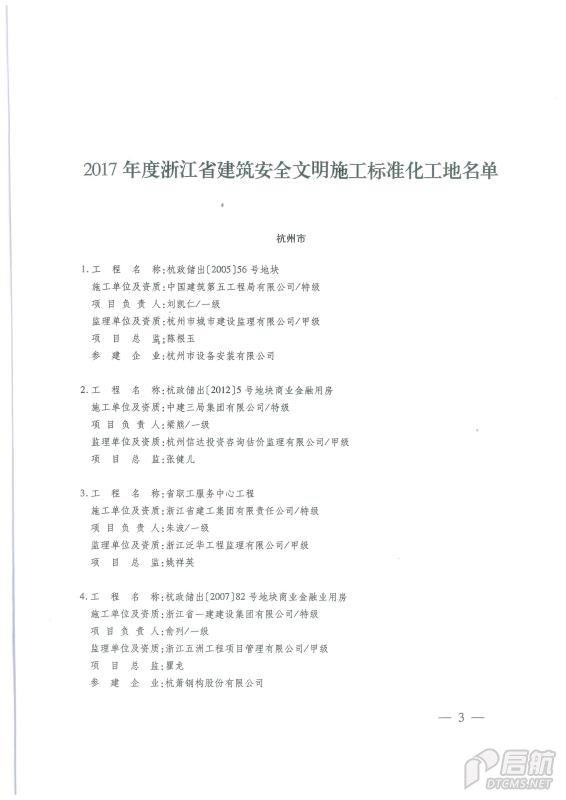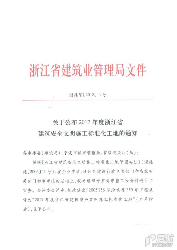 2017年度浙江省建筑安全文明施工標準化工地